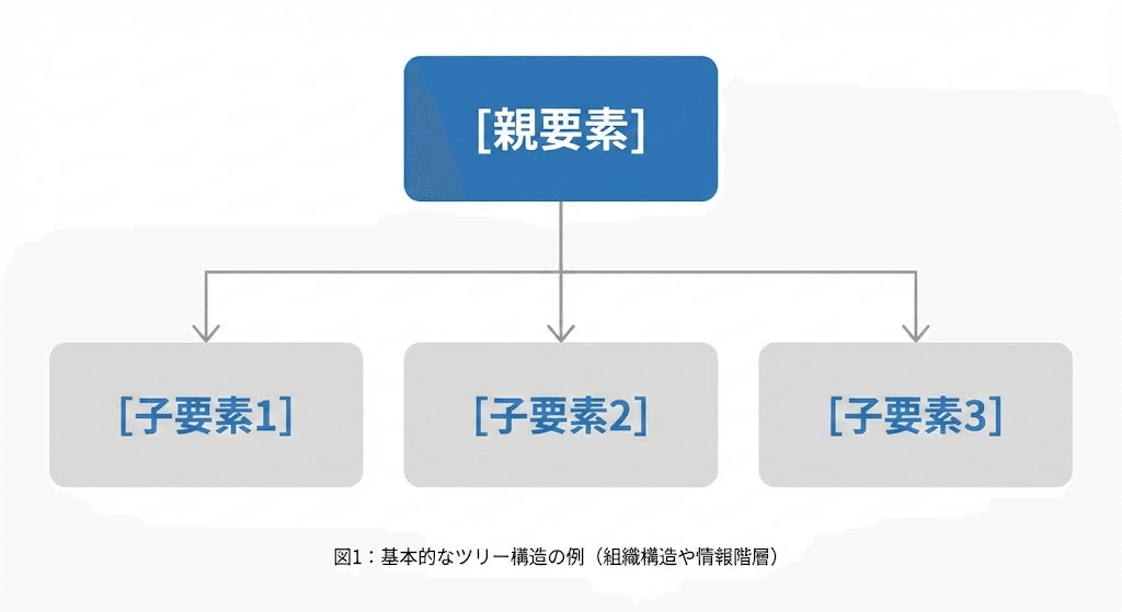 * Layout: (Hierarchical tree structure. Top node is "[親要素]". Branches lead down to three sub-nodes: "[子要素1]", "[子要素2]", "[子要素3]".)