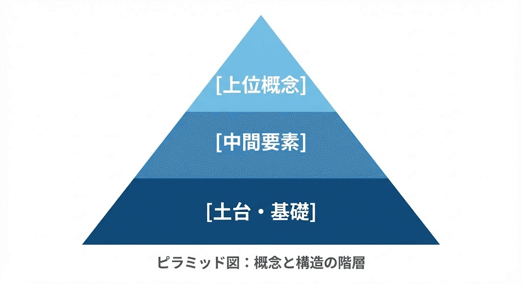 「下が土台、上が上位概念」という関係を直感的に伝えます。