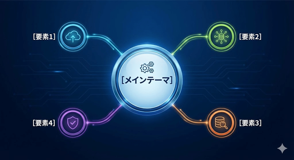 1. “Top-Left”, “Central hub”, “2×2 grid” といった英語の指示は、日本語の「左上」「中央」「2×2の表」という指示よりも、AIのイメージ生成領域に対して圧倒的に高い精度で作用します。