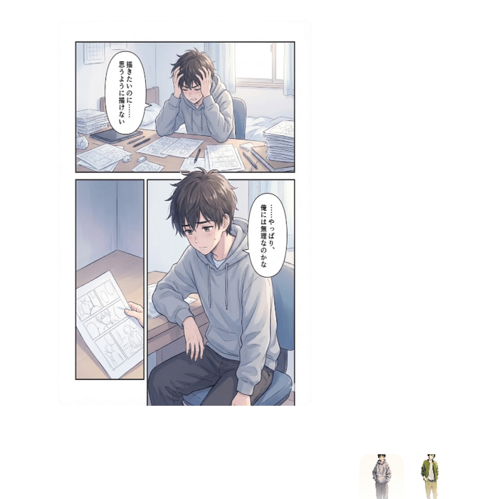 - 漫画を描かせようとしたら、コマごとに主人公の顔が別人に入れ替わる。