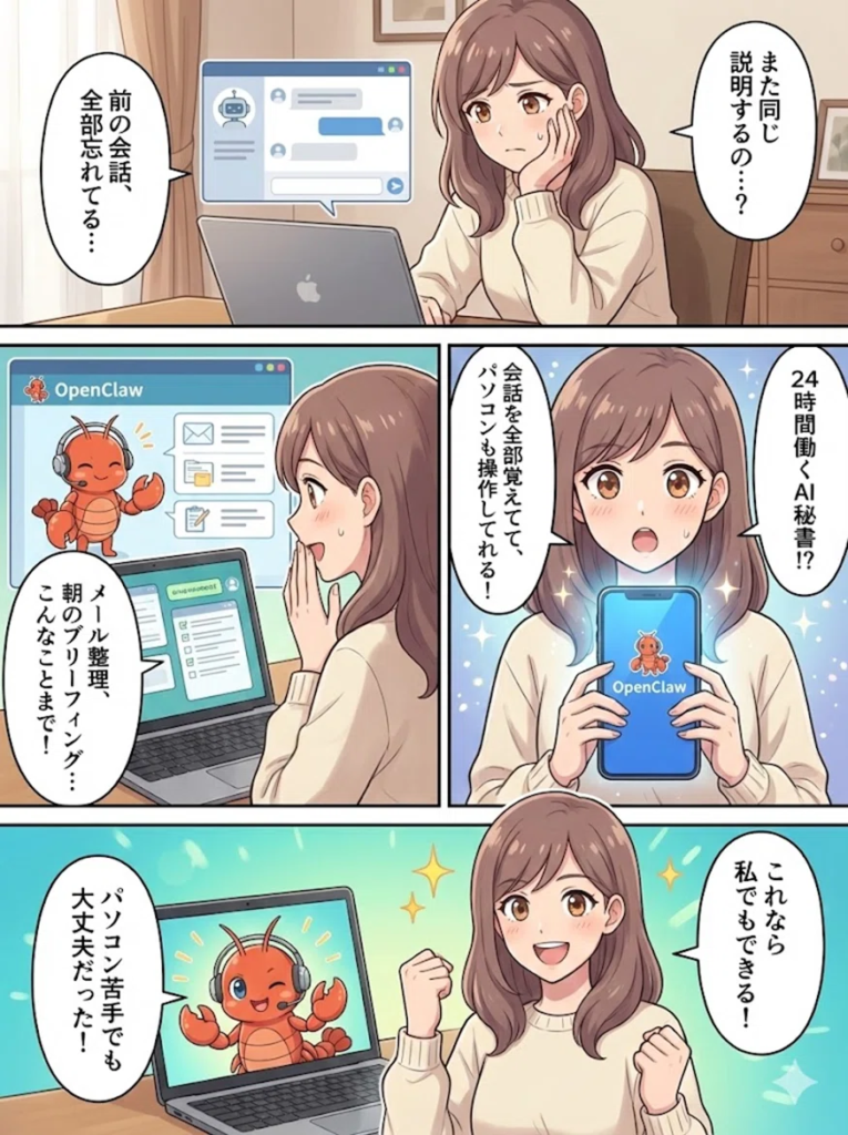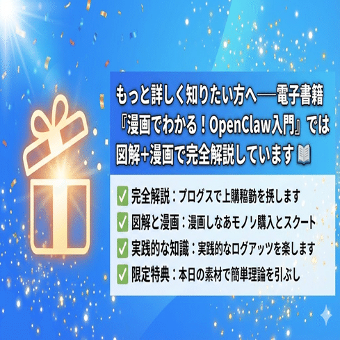 この記事では、電子書籍『漫画でわかる!OpenClaw入門』の内容をギュッと凝縮して、7分で読める完全ダイジェストにまとめました。