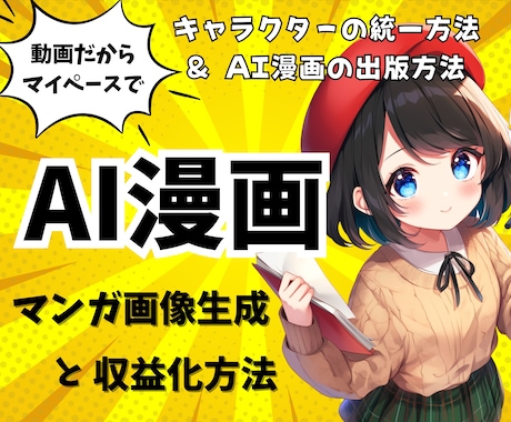 Kindleベストセラー実績を持つ講師による、初心者向けAI漫画作成マニュアル動画(計30分)。ChatGPT(DALL-E3)やcomicai、オプションでMidjourney/Stable Diffusionの活用法を解説。プロンプト資料付きで、キャラ設定からコマ割り、広告利用まで0から指導。高額セミナー不要で、あなたのペースで漫画家デビューを支援します。